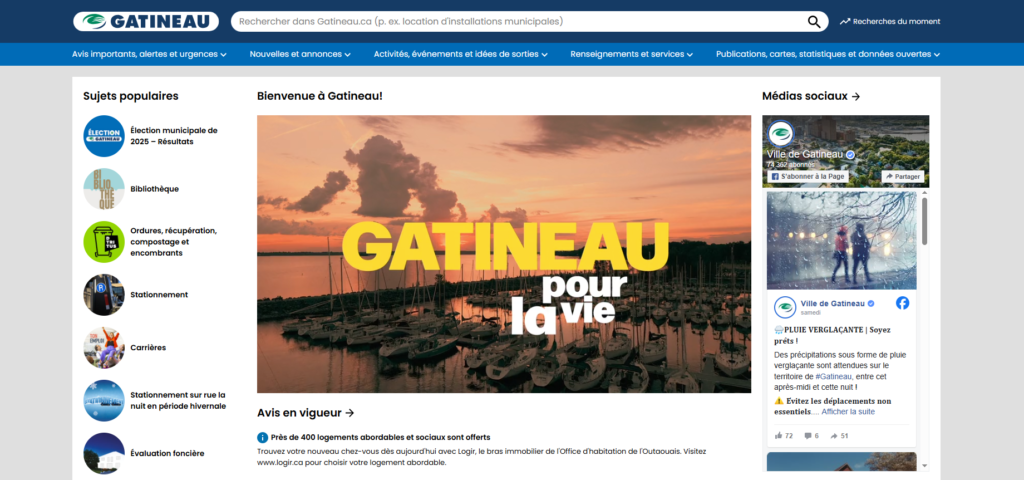 À l’hiver 2025, une responsable des communications de la Ville de Gatineau nous contacte. La Ville de Gatineau souhaite revoir le contenu de la section « Ordures, recyclage, compostage et encombrants » de son site Web.